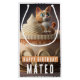 Un sac cadeau d'anniversaire avec un gâteau d'anniversaire de chaton avec "Joyeux anniversaire", police audacieuse casquette. Customisez-le en ajoutant votre ou vos nom(s).
