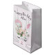 Petit Sac Cadeau Lapin d'anniversaire avec fleurs sur rose