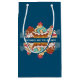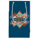 Un sac-cadeau avec le texte : Les cupcakes sont la réponse. Conçu avec une rangée de cupcakes appétissants avec des spirales et des cerises et un glaçage délicieux. Illustré dans un style rétro classique. Les couleurs comprennent le vert rétro, le rouge, le bleu et la crème.
