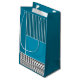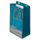 Ce sac cadeau a une conception géométrique d'un grand rectangle turquoise dans le coin supérieur gauche, des bandes turquoises plus foncées dans le coin supérieur droit, un rectangle turquoise plus léger sous les bandes, et des lignes noires dans le bas. Si vous aimez le design mais préférez différentes couleurs, envoyez-moi un message.
