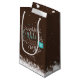 Ce sac cadeau moderne comporte une ligne de mon poème original qui dit "lumières scintillantes et nuits chaudes au cacao". Le design branché en cacao et blanc turquoise et chaud est mis en valeur par une bordure de neige sur un arrière - plan marron chocolat. Ajoutez votre message personnel et votre ou vos nom(s) à l'aide du modèle fourni. Cherchez ID593 pour voir d'autres produits dans ce jeu de Noël coordonné.
