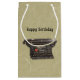 Ce sac cadeau est un look marbré dans la couleur bronzée avec une machine à écrire manuelle vintage noire sur l'avant et le dos. Customisez le texte Joyeux anniversaire avec le modèle.