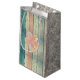 Petit Sac Cadeau Maison de plage en bois rayé turquoise sable rose