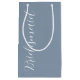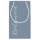 Présentez les cadeaux de votre femme de chambre mariage avec ce petit sac cadeau qui correspond à votre modèle de couleurs de mariage d'un bleu poussiéreux, ainsi qu'un script blanc stylisé qui dit, "Bridesmaid."
