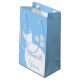 Joli sac cadeau à thème nuptiale dans les tons bleus avec une robe mariage stylisée et des fleurs sur un arrière - plan bleu. Un design personnalisable pour personnaliser avec votre propre texte, photos et idées.
