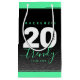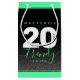 Célébrez le big two oh avec ce design moderne élégant, qui comprend un bloc noir, blanc et vert menthe frappant et des lettres écrites à la main sur un riche arrière - plan noir à gris fumé. Reverse affiche un design identique. Design © W.H. Sim. Voir plus sur zazzle.com/expressionsoccasions