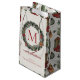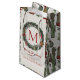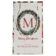 Ce sac-cadeau de Noël monogrammé du pays festif présente des illustrations occidentales dessinées à la main d'une couronne de pin avec bottes de cowboy, casquette de cowboy, baies sèches, cactus et ornements vintages de Noël à l'encre noire. Imprimé à l'avant et à l'arrière. L'arrière - plan présente un motif de pays amusant des mêmes éléments parmi les étoiles et les mots écrits à la main, "Howdy Christmas". Texte modifiable. Personnalisez avec votre nom et votre initiale de famille pour en faire le vôtre. Élégant arrière - plan d'ivoire.