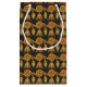 Un petit sac cadeau chic et avec un motif traditionnel égyptien Lotus en rouge rouille, vert et jaune doré sur noir. Faisant partie de la collection Posh and Painterly "Egyptian", ce motif peut facilement être ajusté pour s'adapter à n'importe quel sac cadeau.