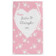Personnalisez ce sac cadeau de Noël rose / étoiles blanches, devant et derrière.