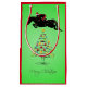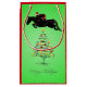 Le cadeau sautant de Noël de cheval met en sac le sac de cadeau de Noël d'amusement pour le cavalier de pullover de chasseur. Le cavalier utilise un casquette de Père Noël et saute par-dessus un joli arbre de Noël avec le Joyeux Noël de salutation.
