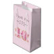 Sac cadeau de remerciement pour les fêtes ou les entreprises. Un nœud brillant et scintillant avec un contour dégradé or et une pierre précieuse rose facettée au centre. Style glamour de luxe féminin.