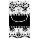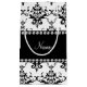 Fleurs florales damassées noires, tendance, chic et joli blanc, motif de diamant noir rayé (faux diamants, pas réel) sur mesure personnalisé avec vos cadeaux de nom ou de monogramme ou vos initiales Idéal pour les mariages, anniversaires, et bien plus avec un lettrage élégant et traditionnel. Des idées cadeaux pour les femmes.