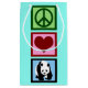 Peace Love Pandas présent. Joli ours de panda à côté d'une enseigne de paix et de coeur sur un bel arrière - plan néon. Un grand cadeau animal.