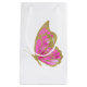 Aquarelle rose et sac cadeau de papillon en parties scintillant dorée. Coordination du papier d'emballage et du ruban disponible.