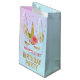 Éblouissez vos invités avec ce joli thème de la licorne sacs cadeaux d'anniversaire avec un beau visage de licorne or et de jolies fleurs avec typographie moderne sur un arrière - plan pastel dégradé arc-en-ciel.