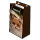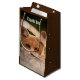 Sac cadeau de remerciement avec une charmante photographie représentant un petit renard orange vous regardant de derrière un rondin dans la nature.