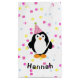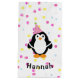 Personnalisez ce mignon manchot de dessin animé portant un casquette de fête coloré avec un motif confetti circulaire dans le sac cadeau arrière - plan avec un nom ou un texte de choix.