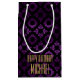 Mauve-foncé fait un arrière - plan sophistiqué pour le texte noir de motif et d'or. Il est chic avec le style. Sac très mémorable de cadeau d'anniversaire.