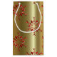 Un élégant sac cadeau de Noël d'étoiles rouges (ou flocons de neige) dispersé sur un arrière - plan d'or pour ajouter une touche festive et sophistiquée à vos cadeaux de Noël cette année.