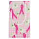 Rubans roses pour la sensibilisation au cancer du sein avec marguerites blanches et bulles sur arrière - plan rose et blanc en vichy.