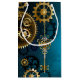 Arrière - plan turquoise, texturé, steampunk avec des engrenages en laiton et or, une clé en argent et l'horloge. Style Steampunk.