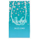 Petit Sac Cadeau Sweet 16 turquoise bleu vert nom de parties scinti