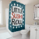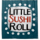 Un joli design typographique qui dit "Little Sushi Roll". C'est du texte en noir et rouge sur un rectangle blanc avec des points blancs amusants autour, le tout sur un arrière - plan turquoise.