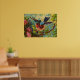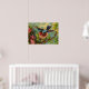 Cette impression colorée illustre un bleuet reposant sur une branche dans une forêt fleurie. Cette vue montre l'oiseau sur le point de prendre son envol. Bleu, rose, jaune et vert vif font une image passionnante pour le décor et les accessoires personnels.