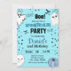 Bleu et noir Boo Halloween petite invitation d'anniversaire de bol, fantôme invitation d'anniversaire pour garçon, Halloween éffrayant anniversaire invitation