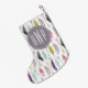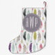 Un bas de Noël comportant un motif des plumes, des flèches, et du chevron pur. Personnalisez avec votre monogramme au-dessus de cercle pourpre.