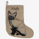 Beau bas de style bohème de Noël de chat - customisez-le ! le bas a l'arrière rouge et le ruban rouge à accrocher. Dessin noir d'un chat siamois sur l'avant avec la pièce d'ajouter le nom de votre chat.