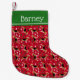 Ce joli design présente nos Beagles portant des chapeaux de Père Noël sur un motif extensible avec des baies et des pins.