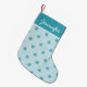 Joli bas de Noël avec votre nom dans une police de caractères blanc avec un arrière - plan bleu turquoise. La réserve est composée d'un motif de flocons de neige bleu turquoise avec de la neige blanche. Le stock de Noël à motifs de flocon de neige est parfait pour les enfants, les animaux de compagnie et les adultes !