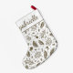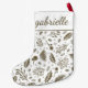 Sepia rustique et Motif botanique d'hiver blanc avec le nom Noël de Noël Stocking.