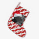 La photo mignonne et personnalisée de chien avec le casquette fait sur commande de Père Noël et le nom de nom d'animal domestique de Noël du chien personnalisé de bas est montrée sur une bannière blanche avec des baies de houx dans le lettrage moderne et rouge au-dessous d'un cadre simple et mince de carré noir avec la photo de votre chien utilisant un casquette du père noël. Déplacez le casquette ou rendez-le plus grand ou plus petit pour s'adapter utilisant l'option de personnaliser. Motif mignon et blanc d'os de chien sur l'arrière - plan rouge. La couleur rouge d'arrière - plan peut être changée. Lunatique, décor de vacances de Noël pour des amoureux de les chiens. Amusement, cadeau personnalisé de Noël pour votre bébé de fourrure ou pour des propriétaires de chien. Trouvez les bas plus personnalisés de Noël de photo d'animal familier dans notre magasin de Zazzle.com/angela65. Le mélange et le match et choisissent un bas mignon de vacances pour chaque membre de la famille, y compris vos animaux familiers aimés.
