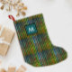 Ce bas cool de Noël a un motif écossais traditionnel écossais écossais avec, à l'avant, une impression géométrique verte et noire et un monogramme simple et personnalisable. C'est parfait pour Noël !