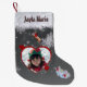 🎄This cute, personalized name and photos Christmas stocking has faux white fur across the top, your personalized family member's name in a snow-capped font, and images of a horse and two white baby bunnies donning red bows, and a red heart containing your special uploaded photo.