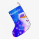 Magical mignon bonhomme de neige bleu avec des flocons de neige Garnitures pour enfants. Des flocons de neige et des flocons blancs sur un bel arrière - plan bleu et rose. Personnalisez ces bas magiques avec le nom. Le bas a l'air magique et les enfants vont adorer.