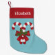 Petite Chaussette De Noël Deux Sucres de canne Rouge Et Blanc Sur Bleu Avec