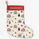 Joli Festif de Noël Rainbows Vacances Nom du Motif Noël Stocking présente un mignon motif d'arcs-en-ciel festifs, arbres de Noël, lunes de croissant, décorations, étoiles et feuilles saints. Personnalisez avec votre nom en modifiant le texte dans la zone de texte fournie. Conçu par ©Evco Holidays www.zazzle.com/store/evcoholidays