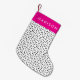 Des bas personnalisés donnent un cadeau donnant une touche spéciale pour la saison des fêtes. Cette décoration est composée d'une motif moderne tachetée en noir et blanc avec une touche de rose vif.