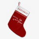 Noël personnalisé Stocking pour votre chien avec drôle et mignon "joyeux woofmas" au lieu de "joyeux noël" dans une conception rustique et script texte avec leur nom en police de machine à écrire au sommet d'un bas de vacances rouge, blanc et vert à accrocher pour votre animal.