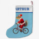 Un bas vraiment mignon qui peut être personnalisé. C'est Père Noël Squirrel à bicyclette pour livrer tous ses cadeaux à ses amis de la noix.