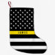 Le cadeau parfait pour des policiers, ce bas de Noël comporte une ligne jaune mince drapeau américain d'expéditeur noir et blanc avec un nom pour que vous personnalisiez.
