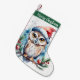 Christmas Stocking featuring a cute watercolor Owl with a Christmas hat. Customizable.