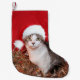 Petite Chaussette De Noël Minou tigré dans le casquette de Père Noël