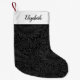 Motif Floral Noir Personnalisé Petite réserve de Noël. Ajoutez une touche festive à votre manteau de vacances avec ce style vintage moderne et élégant William Morris Black et Grey Larkspur Floral Motif Noël Stocking. Personnalisez avec un nom ou une initiale en haut en écriture de script de calligraphie noire.