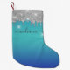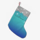 Monogramme Parties scintillant argent Keepsaké de Noël Petit Stocking avec moderne bleu ombre et parties scintillant goutte à goutte. Il suffit d'ajouter un nom pour le rendre personnel en cliquant sur le bouton "Personnaliser"