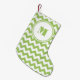 Petite Chaussette De Noël Monogramme Chaux Vert blanc rayé Chevron