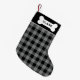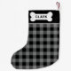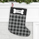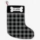 Le stockage de Noël offre un design personnalisé pour votre chien de compagnie avec un motif de chèque en plastique de buffle gris et noir et un monogramme personnalisé en noir sur une plaque d'identification d'os de couleur blanche. Inclut la même conception des deux côtés du stockage.